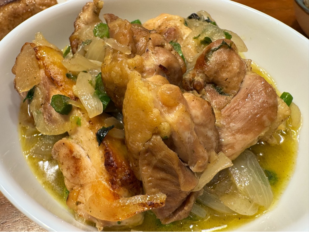 ゆっくり伊達赤鶏を焼いてから玉葱などを追加して炒めました。