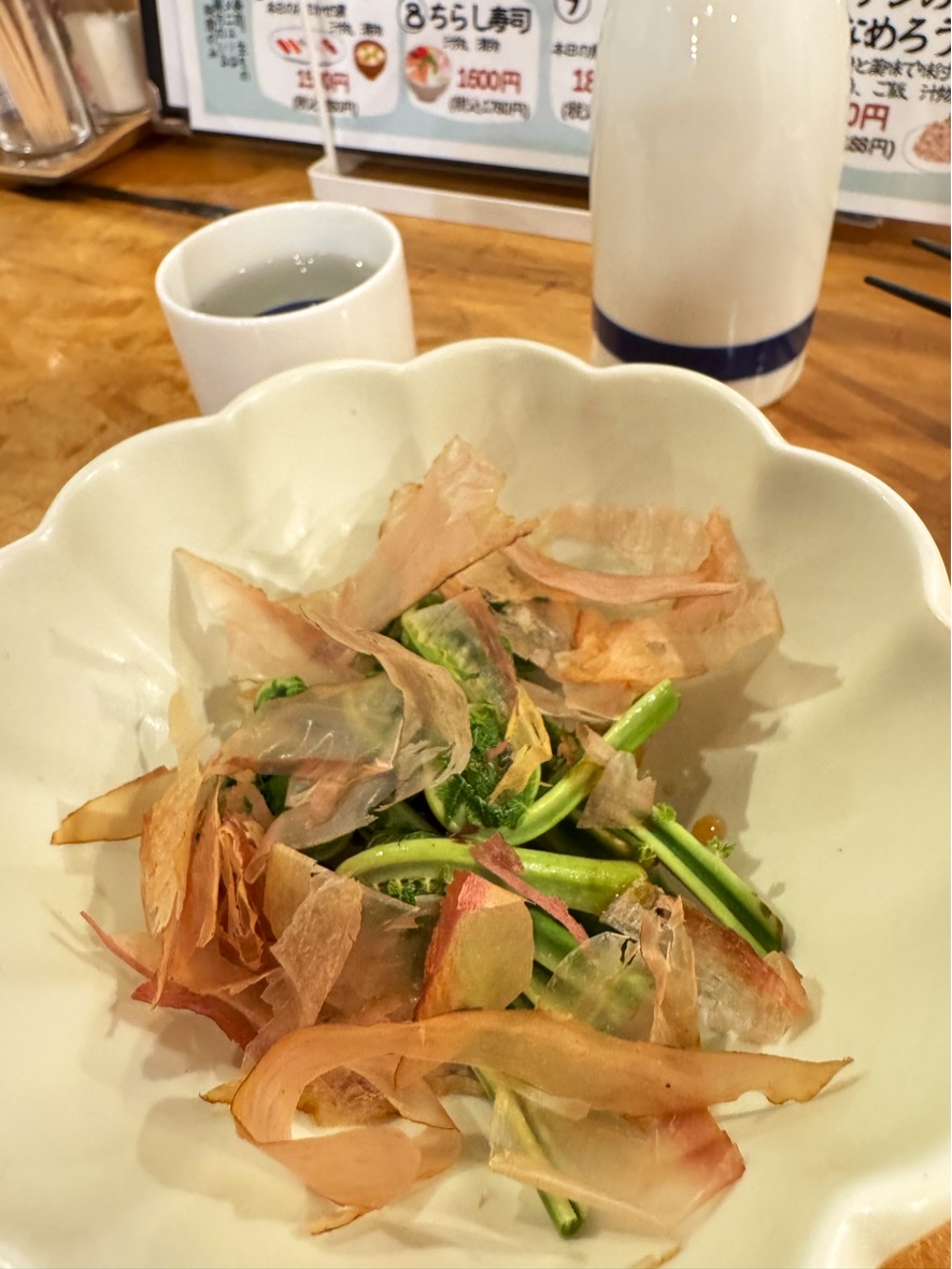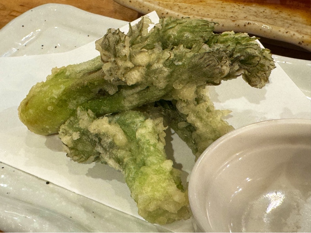 墨廼江の温燗呑みながら、コゴミのお浸し。