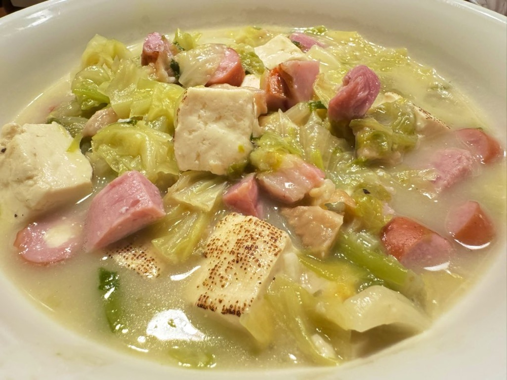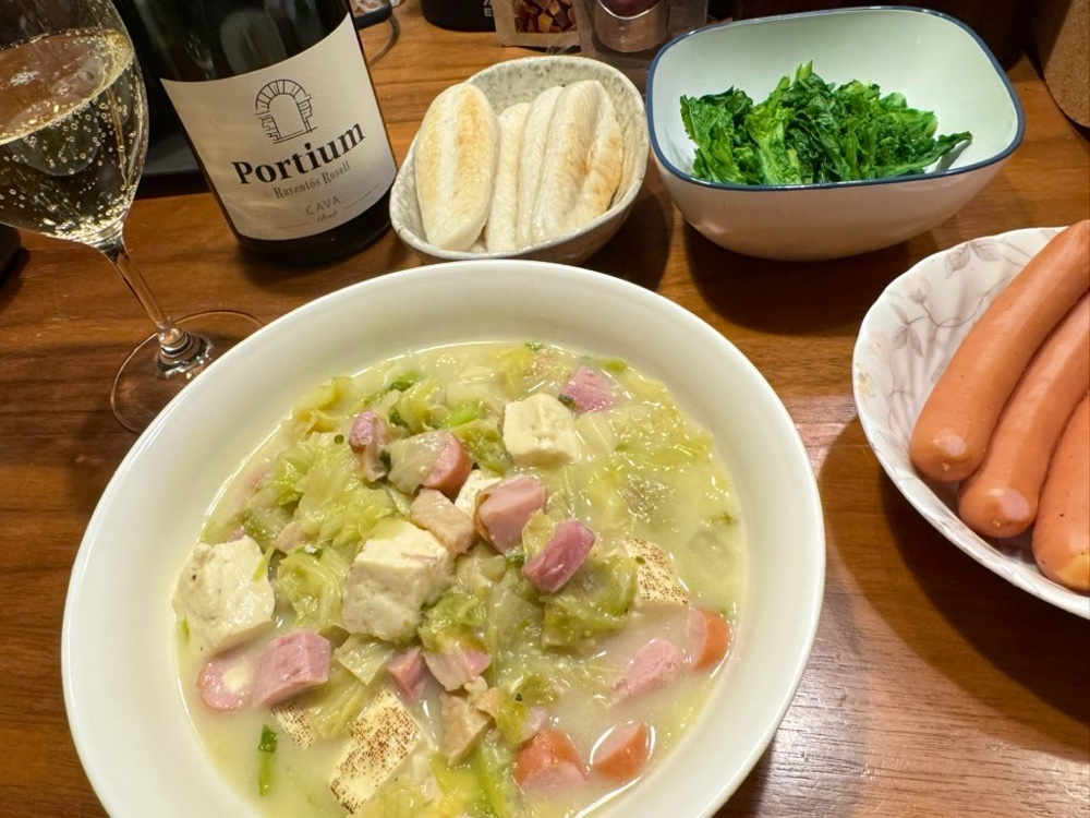キャベツと菜花のクリームスープ。