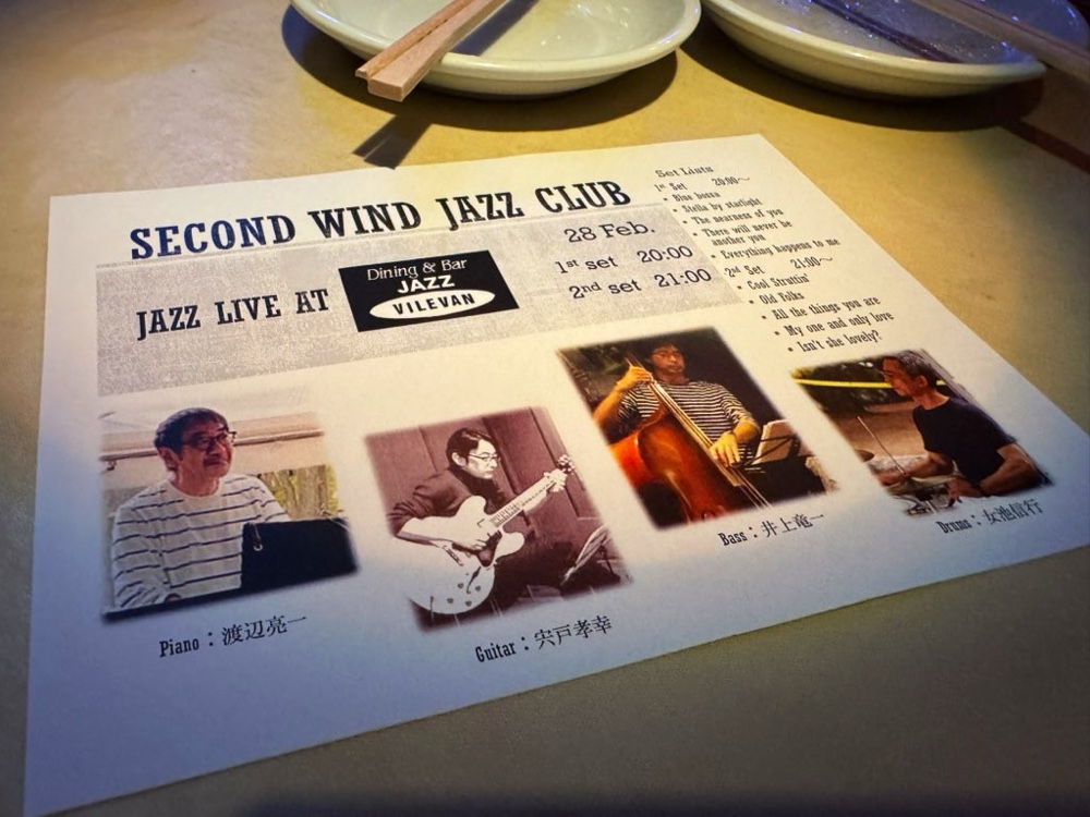 ライブでしたが、お隣にタバコな二人が来てしまったので、早めに退出しました。