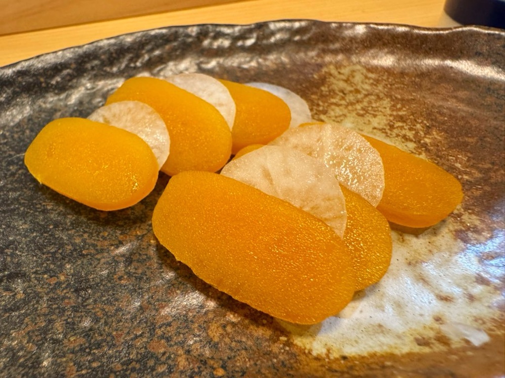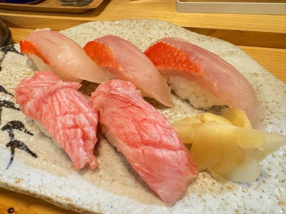 かまトロと金目鯛の握り。