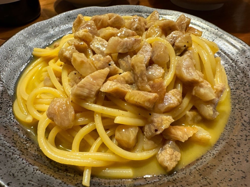 パスタは稲庭饂飩の産地で作られたパスタですが、パスタっぽく無い(笑)