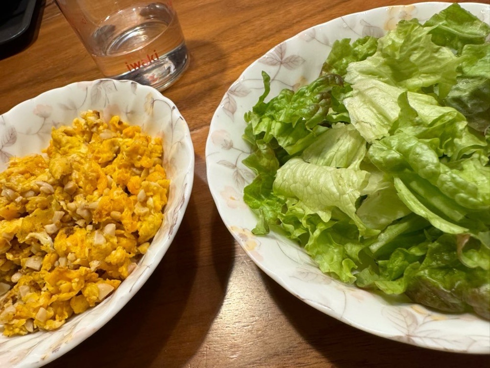 炒り卵とサラダ。