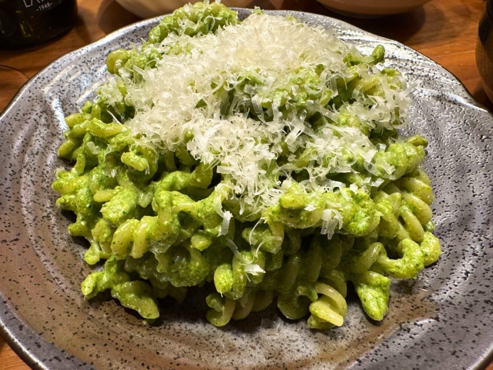 ホウレン草のペーストはバジリコにマスカルポーネとピスタチオに少しジャガイモ。