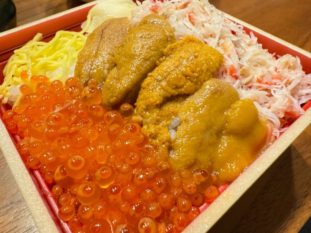 「まるよし」さんの三色弁当、蟹チラシ。