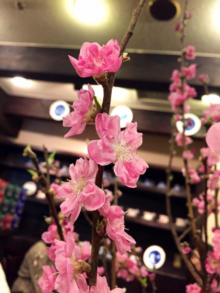ホシヤマ珈琲店さんでは桃の花が咲いていました。