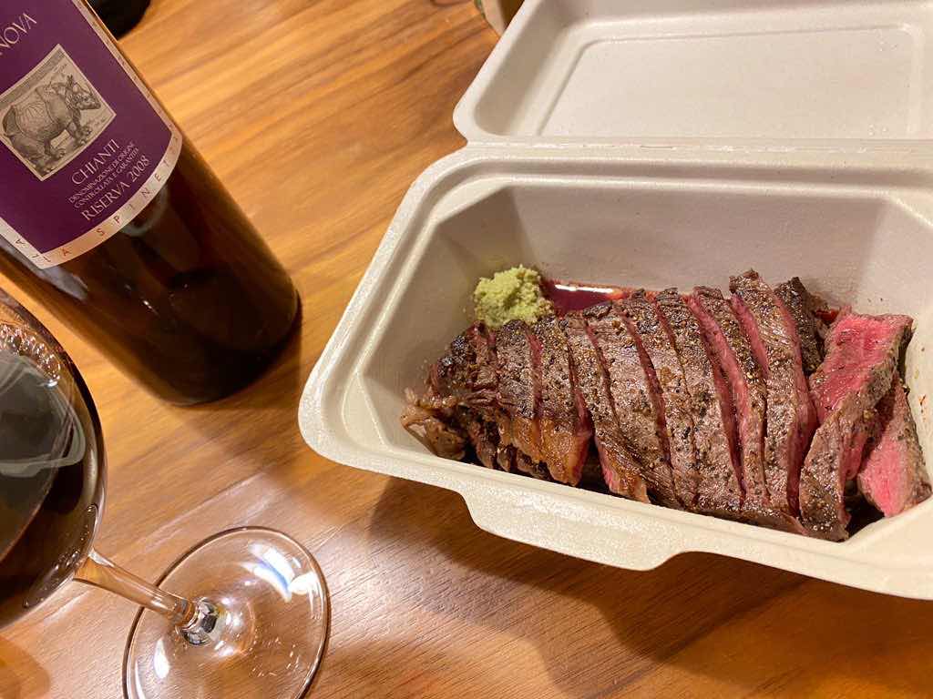 近所の「ステーキハウス仙」さんでステーキを持ち帰りにして貰いました。