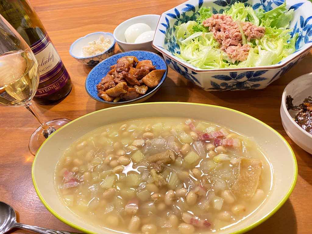 ニコライホーフのリースリングを呑みながらの夕飯。
