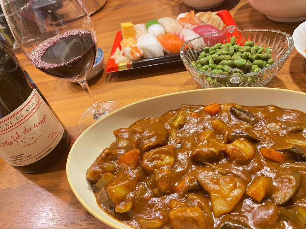 夏野菜のカレーを目指して仙台長茄子なども多めに使いました。