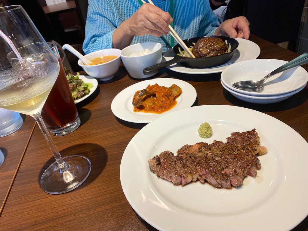 ワインをいただきながらステーキから食べてました。