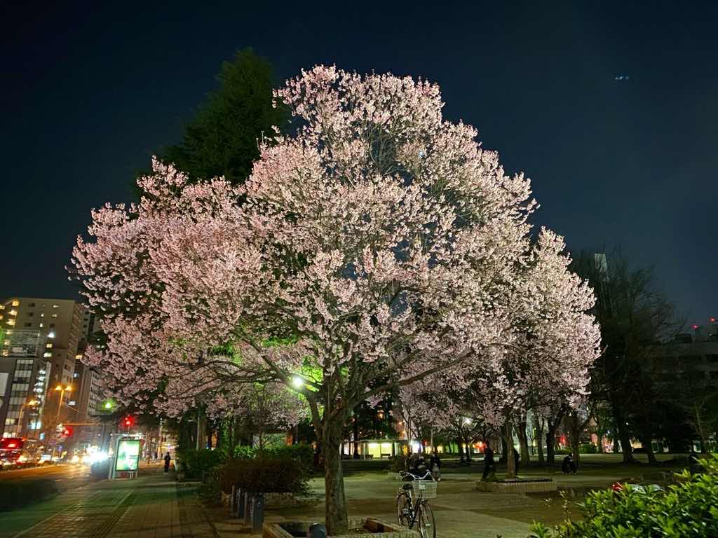 仕事帰りに錦町公園で夜桜見物。