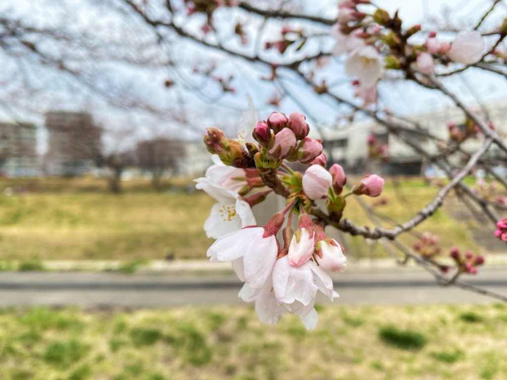 錦町公園の早咲きの桜は満開です。
