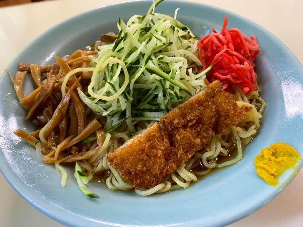 冷やし中華の甘酢だれと豚カツが意外にも良いのに気付いたのでした。