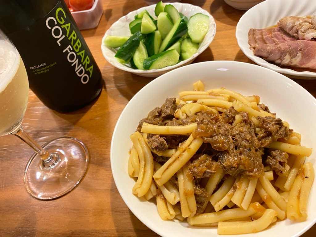 昼から仕込んでいたジェノベーゼを使ってパスタに。