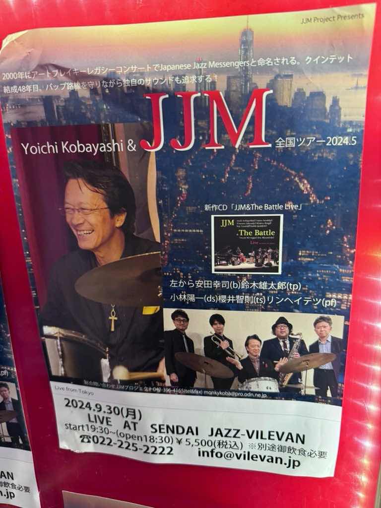 来週の月曜日、9月30日はモンキー小林さんのライブ。