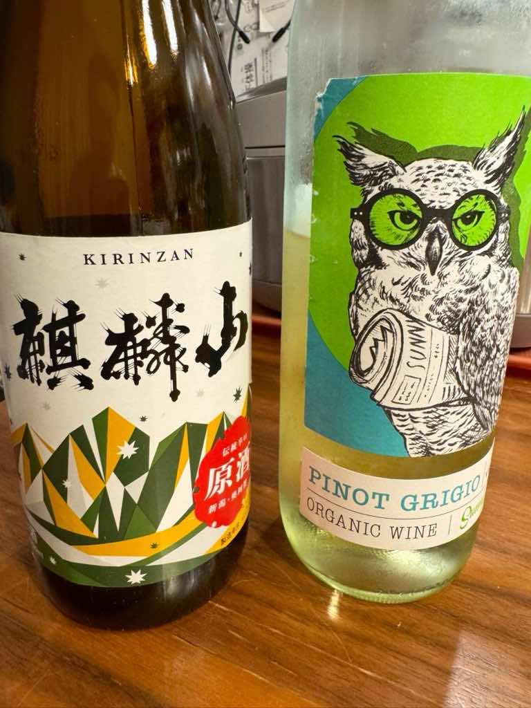 今夜は麒麟山の伝辛原酒とサニー・ファームのピノ・グリージョ。