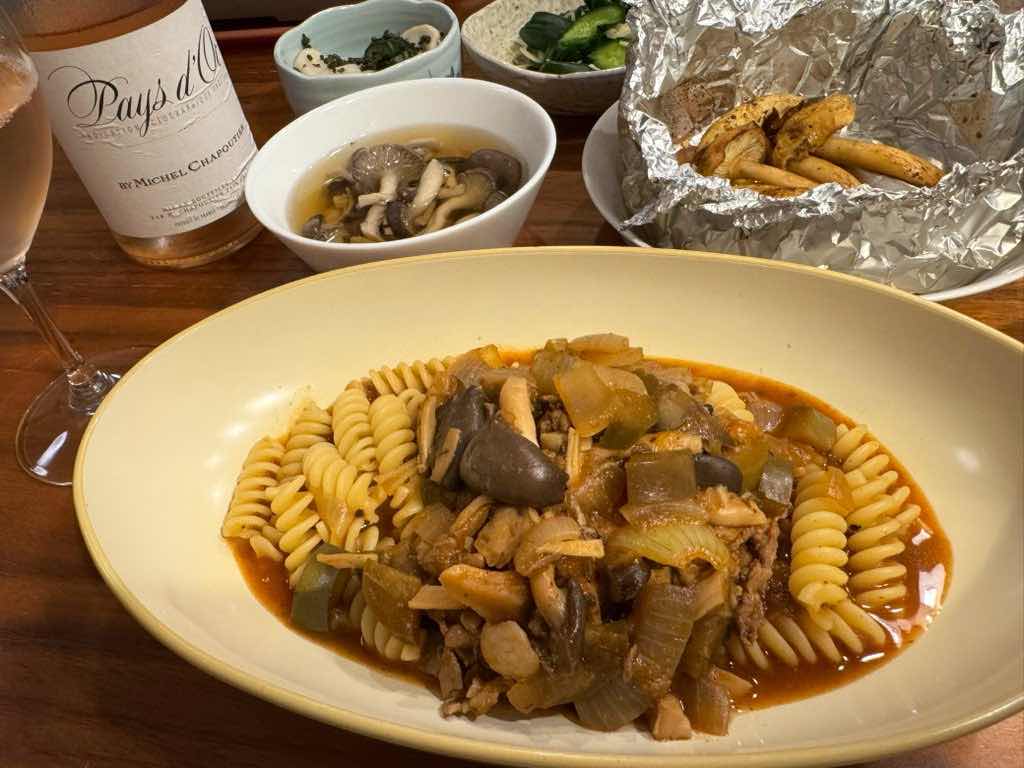 平茸と茄子のパスタ。