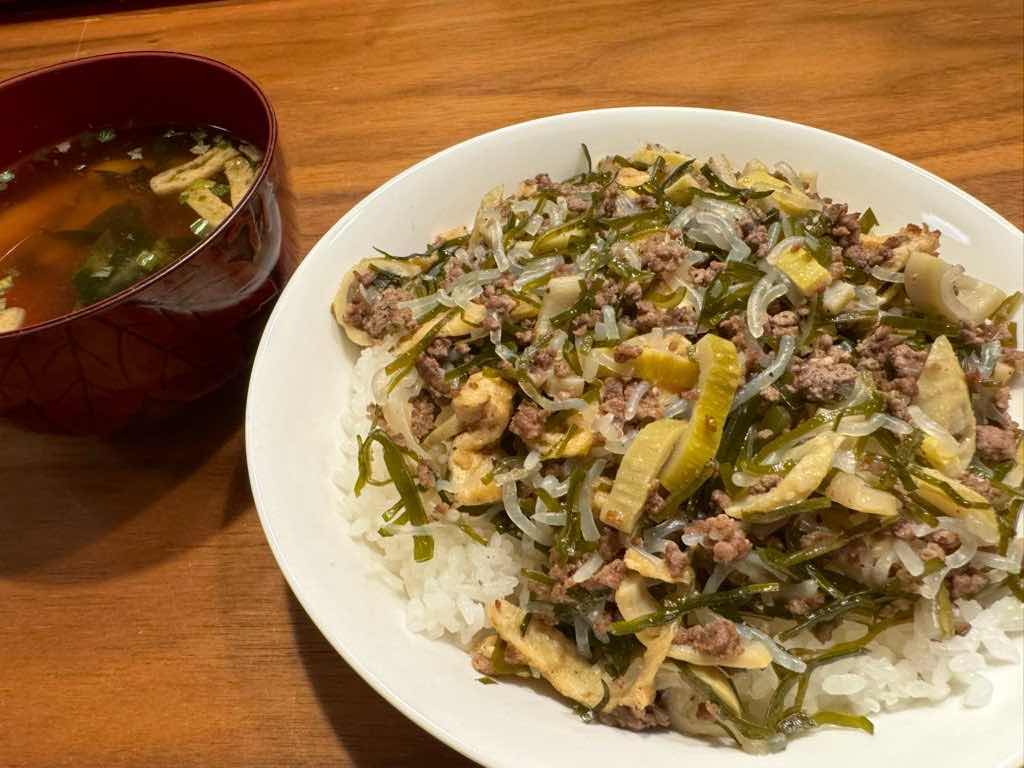 オヤジさまが作る作り置きの定番は、筍と昆布とシラタキを自由に組み合わせてました。