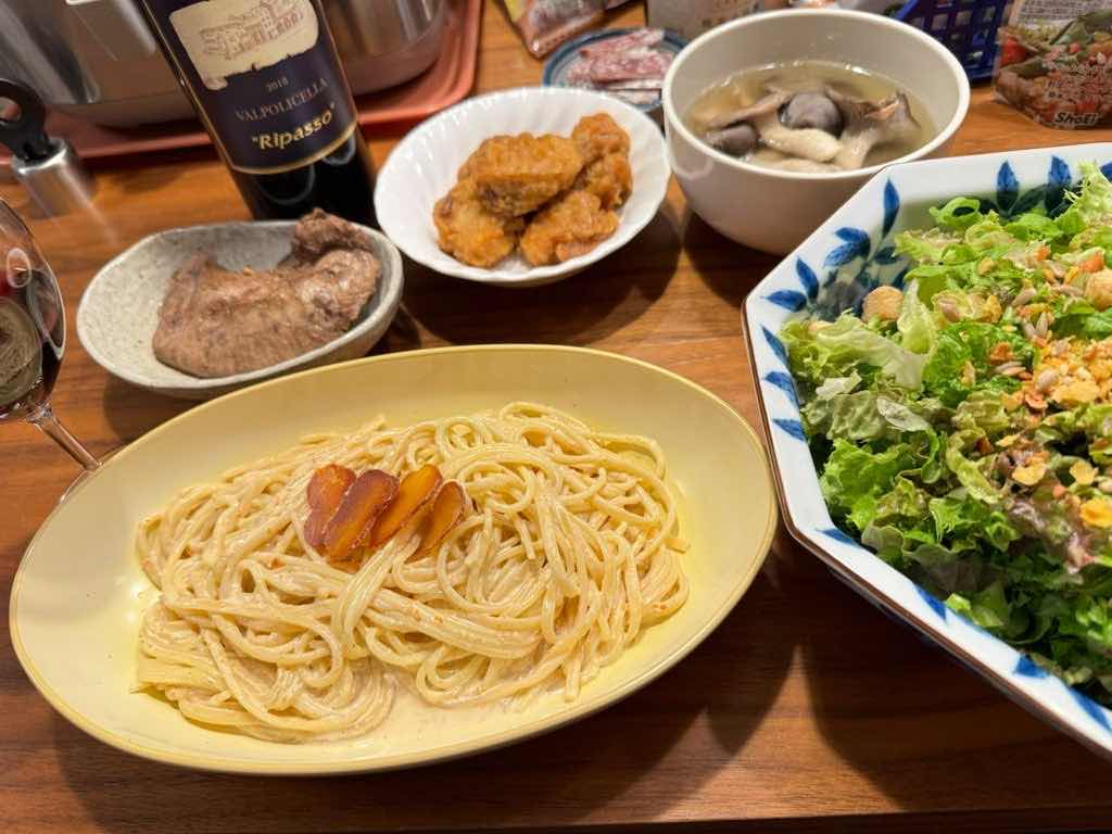 村田産の野菜でサラダ多め。