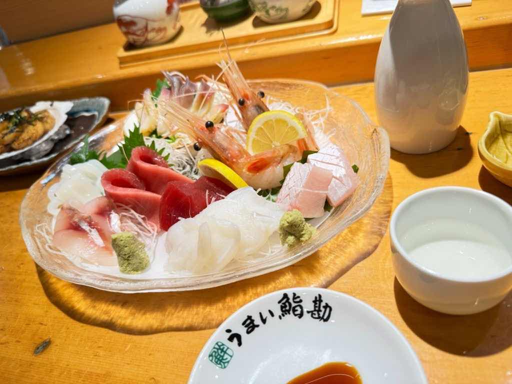 乾坤一の温燗を呑みながら刺身です。