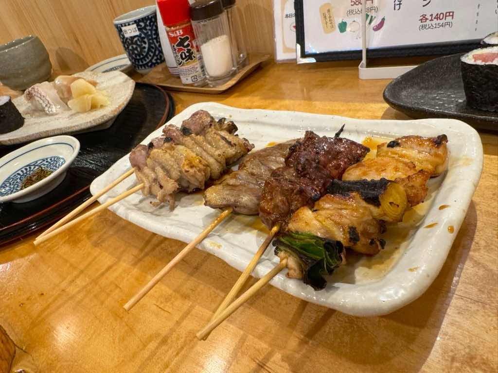 カスベの唐揚げから焼鳥へ。