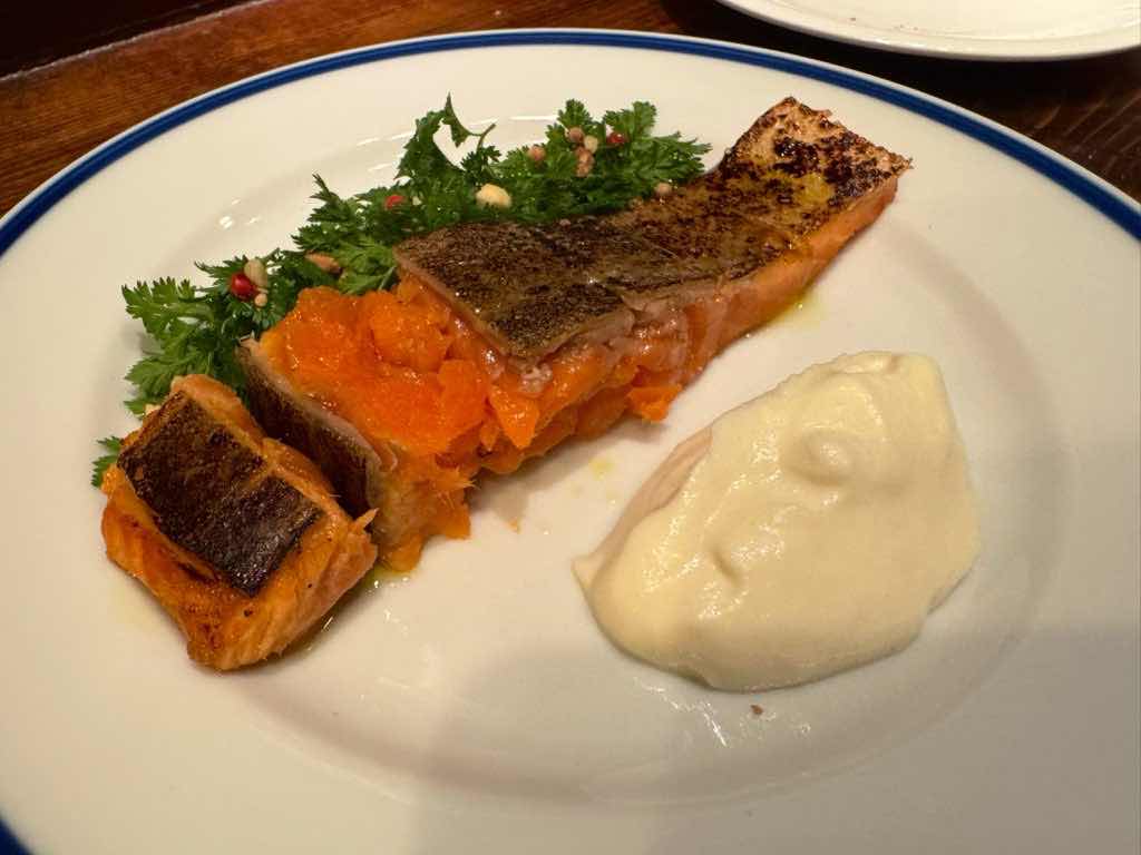銀鮭をスモークして皮を焼いた旨旨。