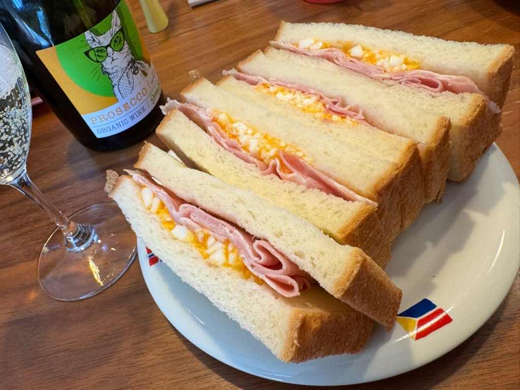 サニー・ファームのプロセッコを呑みながらサンドウィッチ。