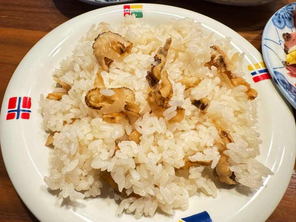 マルヨシさんで買っていたホタテ貝ひもの乾物で炊き込みご飯にしただけなのです。