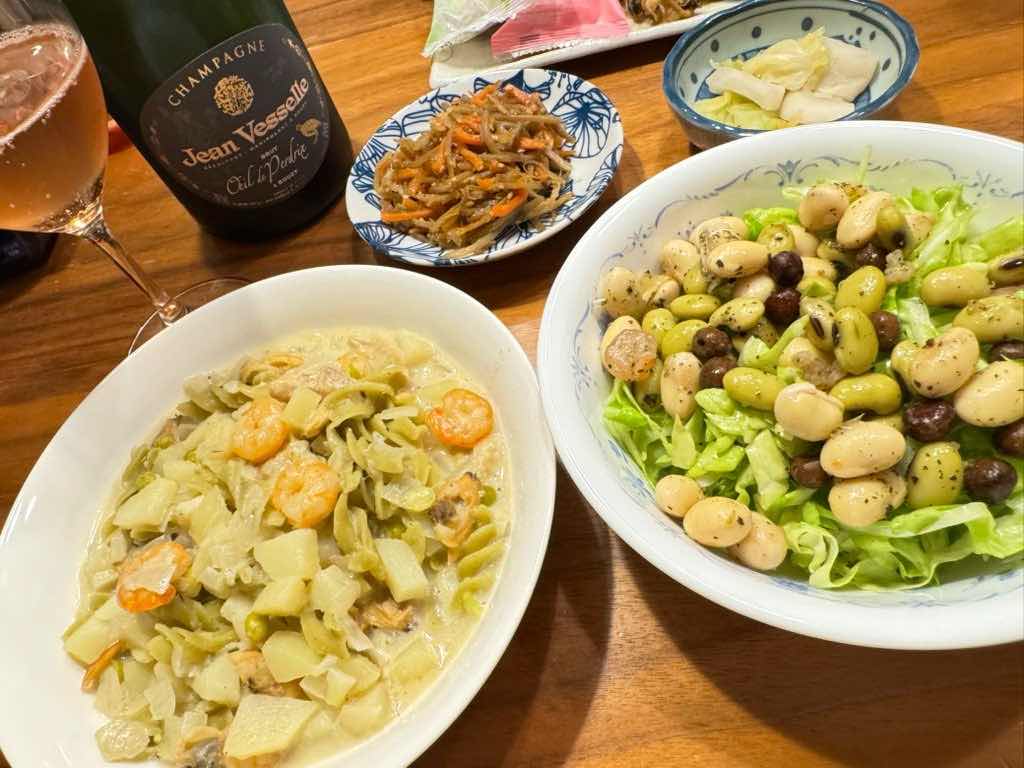 豆のサラダを多めに作り置きしていたので便利です。