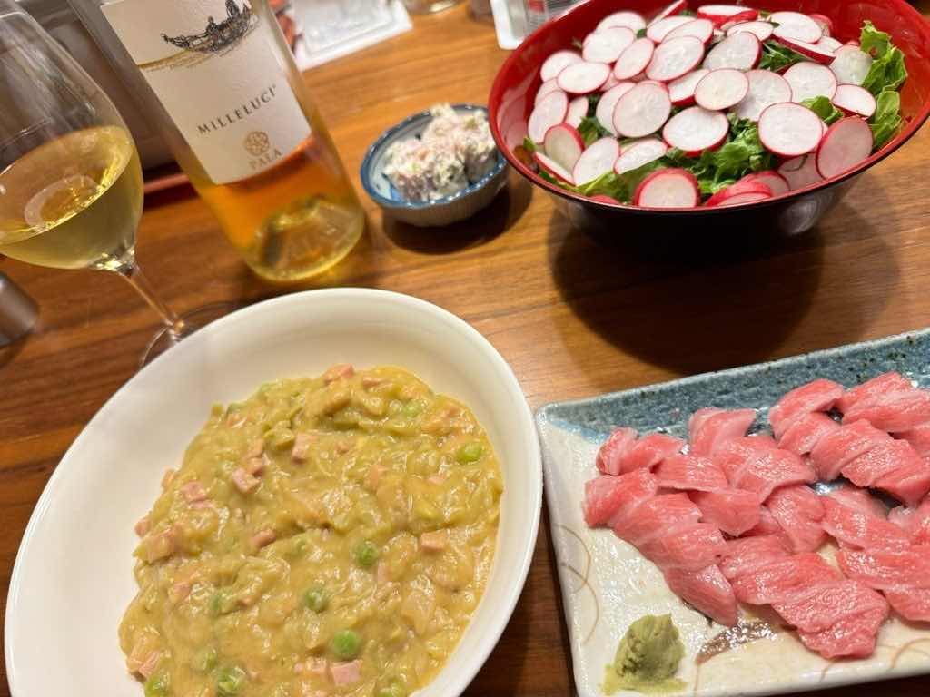 グリーンピースのパスタを使ったら存在感が無くなってました。